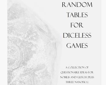 These tables are intended to give specific ideas for things to include in your games of Nobilis or Glitch. They tend towards the whimsical and sometimes comic. If they are at all useful in any way (or if you just liked the nanofic), please let me know via Itch or at thenorm42@hotmail.com!